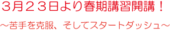 新学年へのスタートダッシュを春休みからではなく今から始めてみませんか?3学期は比較的1学年の総まとめとなる為に比較的進度が緩やかになる場合が多いと思います。特に小学6年生。中学へ入学してからの勉強に対する不安を取り除く為にも、今から取り組んでいきましょう。
